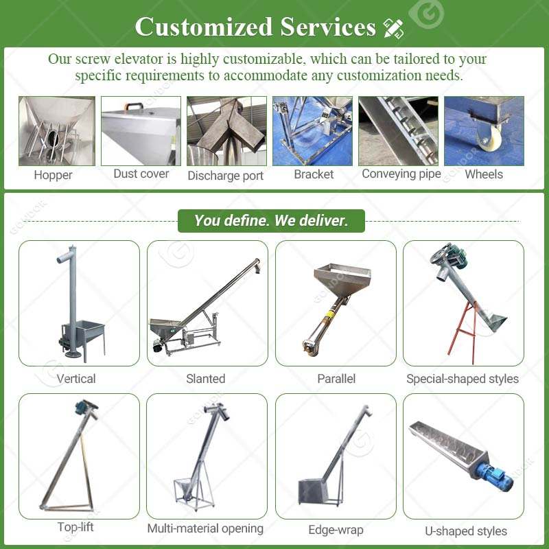 เครื่องป้อนแบบสกรูแนวตั้งชนิดหนอนหมุน เครื่องลำเลียงแบบท่อเกลียว เครื่องปั่นขนาดเล็กแบบเอียง เครื่องปั่นขนาดใหญ่สำหรับแป้งแป้งข้าวเจ้า