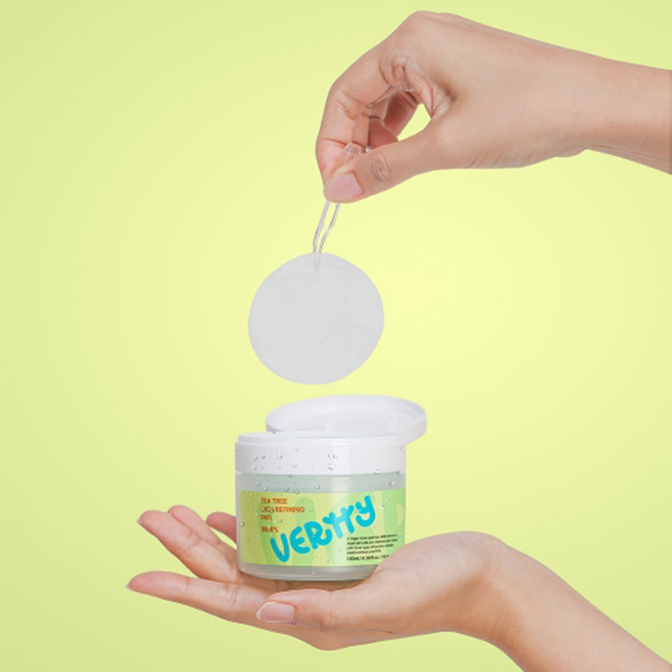 [Vertty] แผ่นโทนเนอร์สำหรับขัดผิววีแกนพร้อมต้นชาและ CICA | แผ่นผ่อนคลายแบบย่อยสลายได้ทุกวันสำหรับผิวที่บอบบาง
