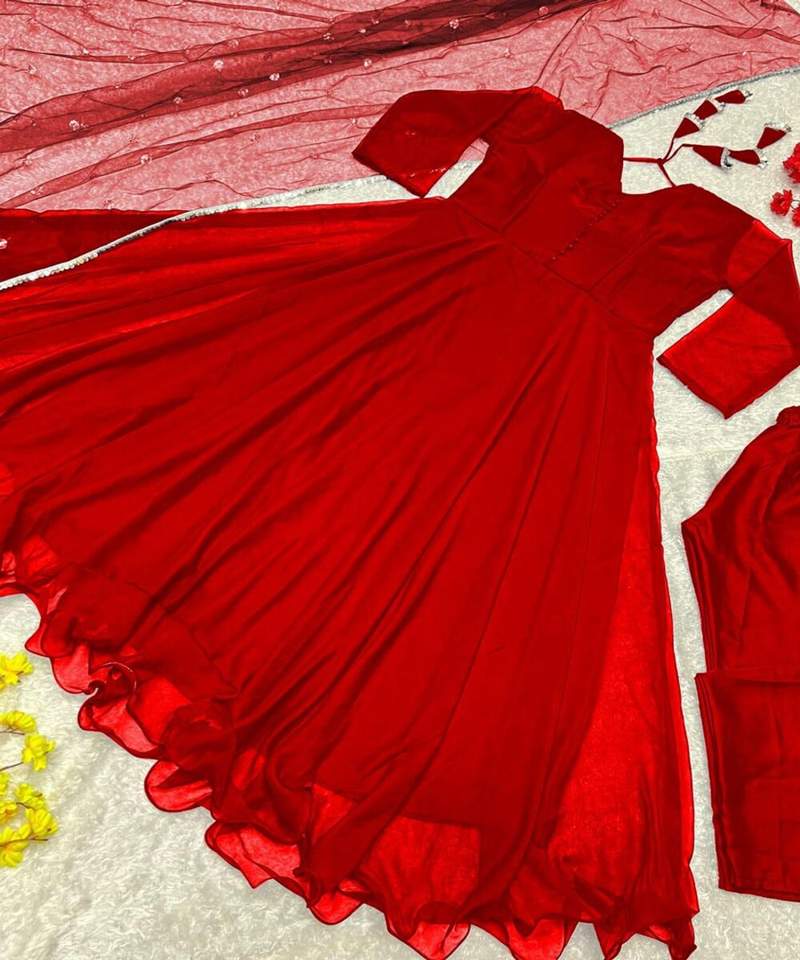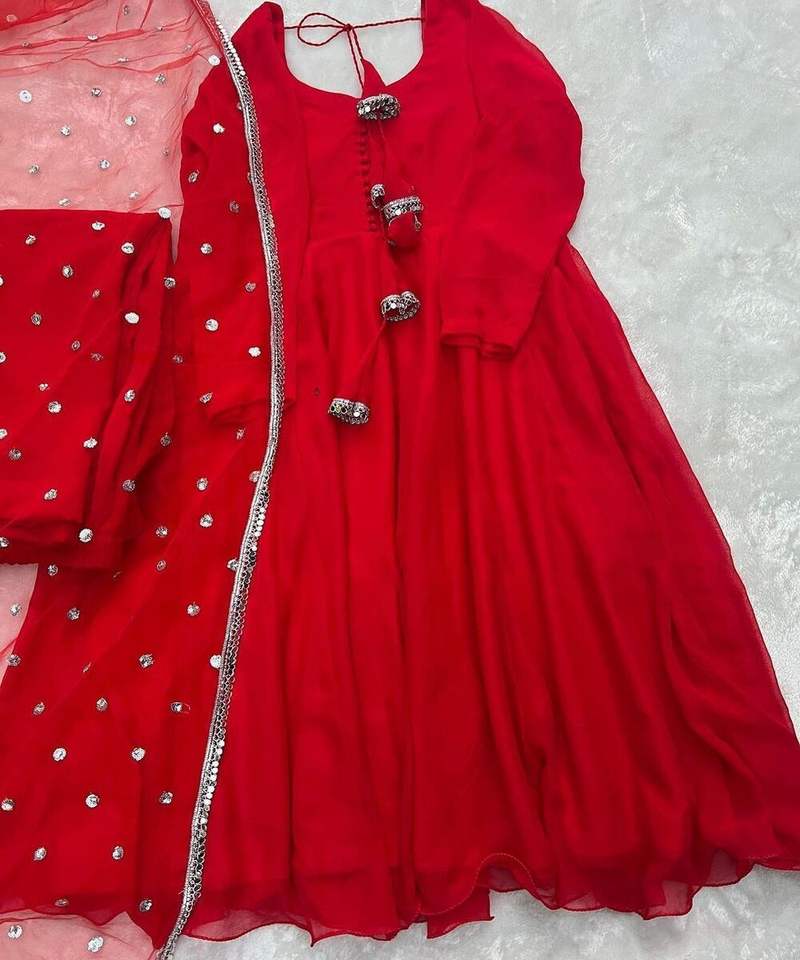 ชุดเดรสปักลายสวยงามมากสำหรับงานปาร์ตี้ งานออกแบบโดยดีไซเนอร์ สำหรับผู้หญิงอินเดีย ตัดเย็บสำเร็จรูป ราคาถูก ขายส่งจากเมืองสุรัต ผ้าโพลีเอสเตอร์