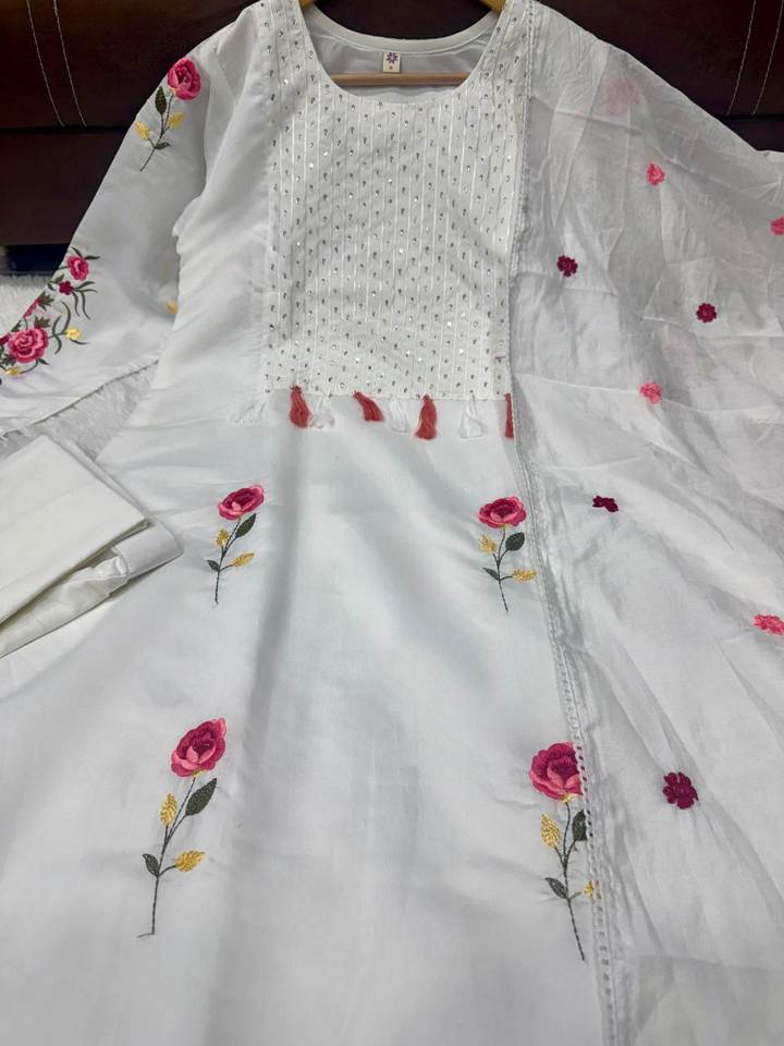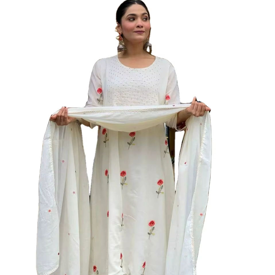 ชุดสัลวาร์คุรตีสีขาว น้ำหนักเบา งานปักสวยงาม ดีไซน์คอทรงโอ เหมาะสำหรับฤดูร้อน สวมใส่สบาย ราคาสมเหตุสมผล