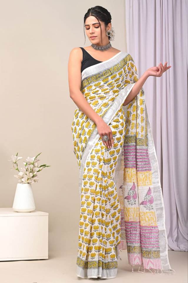 ผ้าส่าหรีผ้าไหมที่สวยงามมีขอบ zari สำหรับงานปาร์ตี้