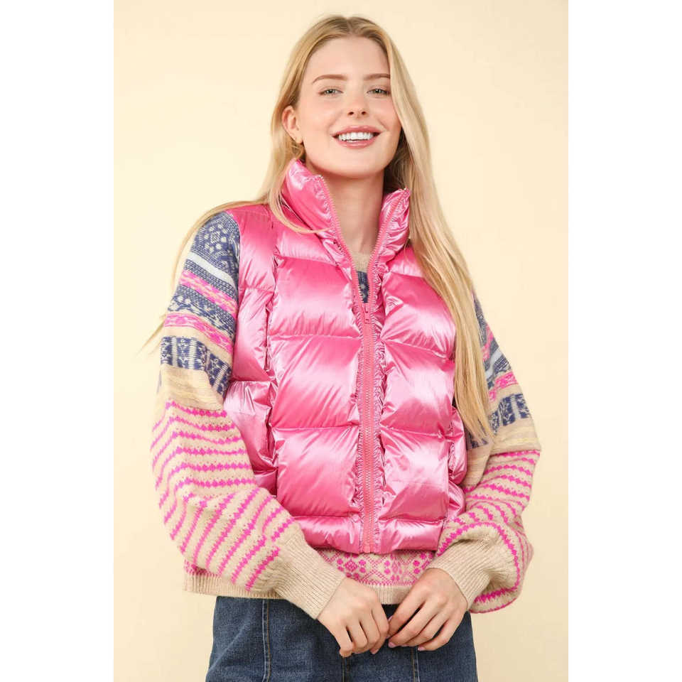 เสื้อกั๊กขนเป็ดมีซิปสีเมทัลลิกสำหรับผู้หญิง