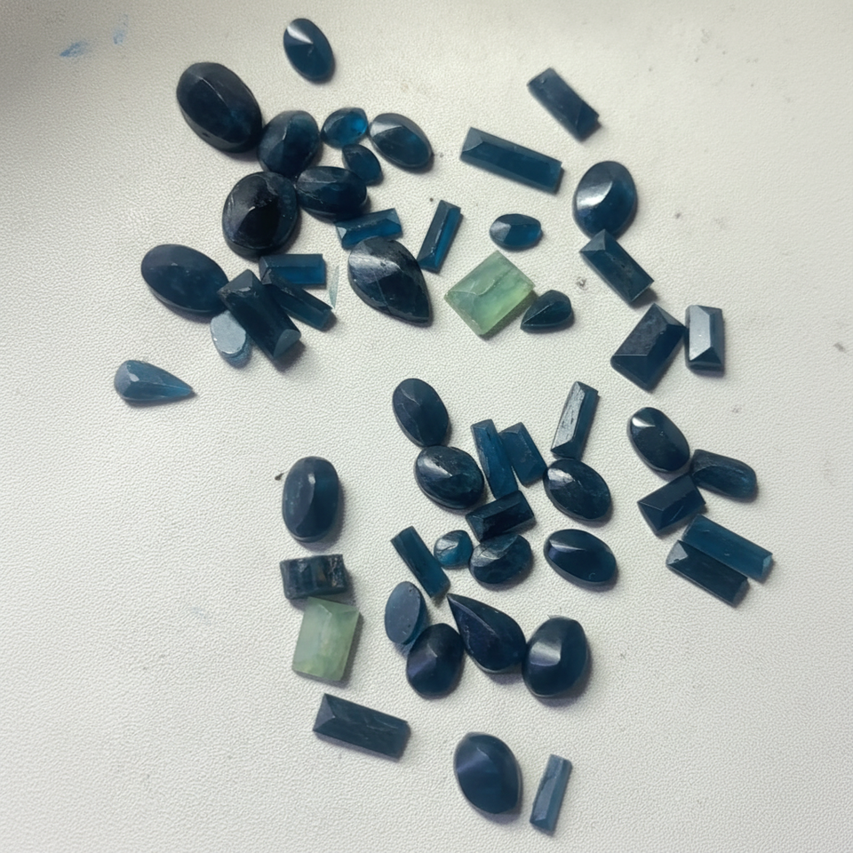 พลอยไคยาไนต์ธรรมชาติรูปทรงผสมผสานหลากหลายแบบ งานแกะสลักเจียระไนทรงคาโบชอง ทำด้วยมือ เครื่องประดับสำหรับผู้หญิง