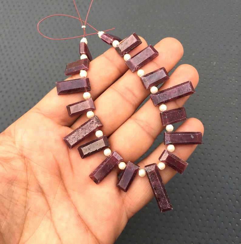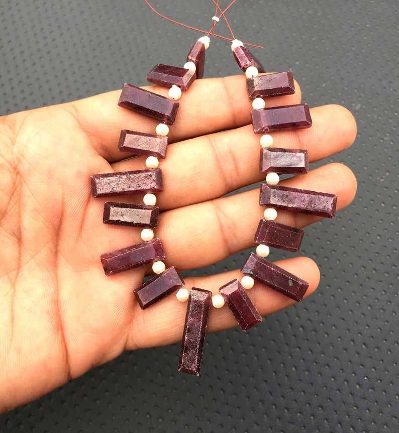 เครื่องประดับทำจากพลอยทับทิมธรรมชาติ17ชิ้น,เครื่องประดับทำหินก้อนเล็กทรงสี่เหลี่ยมผืนผ้าสวยงามมาก