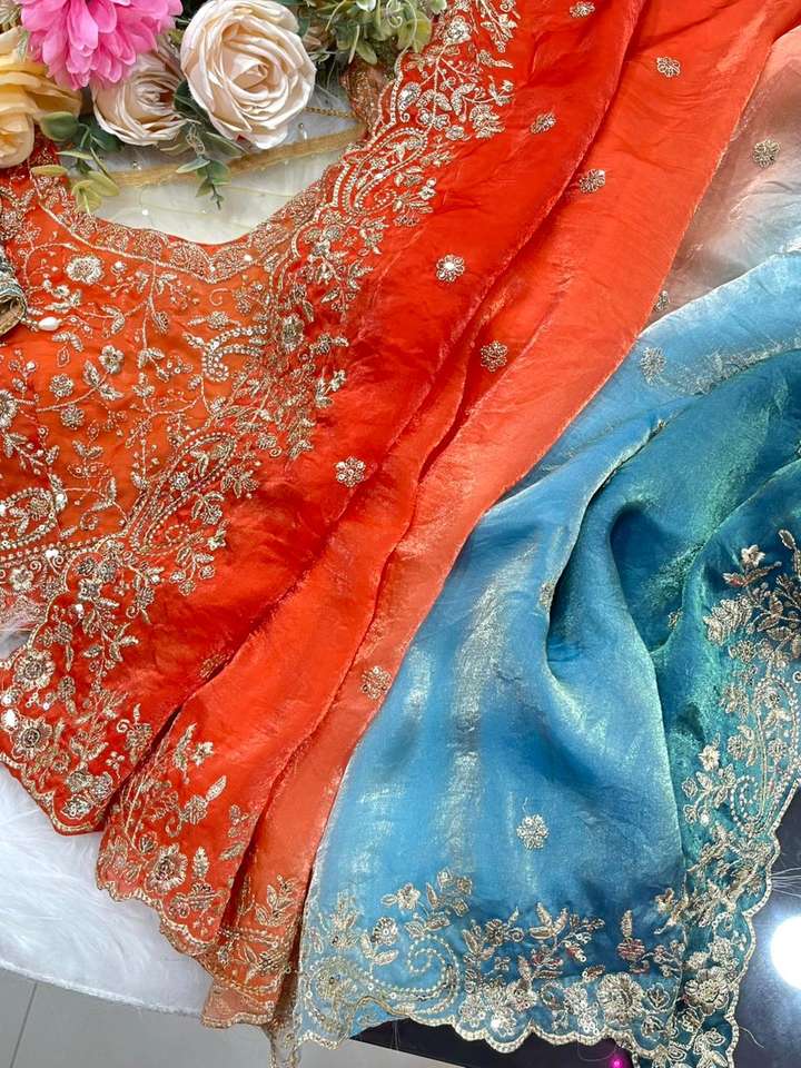 Very soft & elegant rich look fendy sartin fabric with beautiful embroidery 3 mm sequence work heavy border with buttis