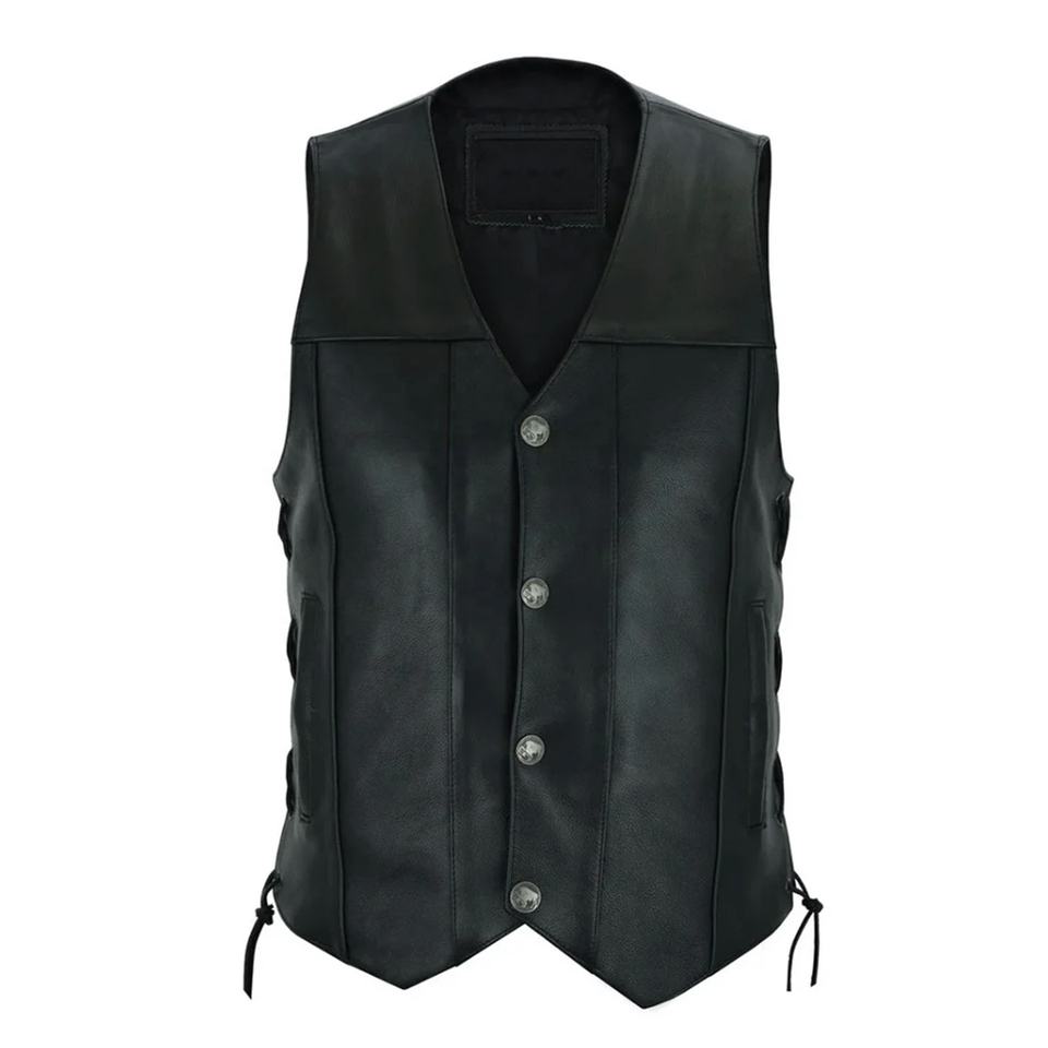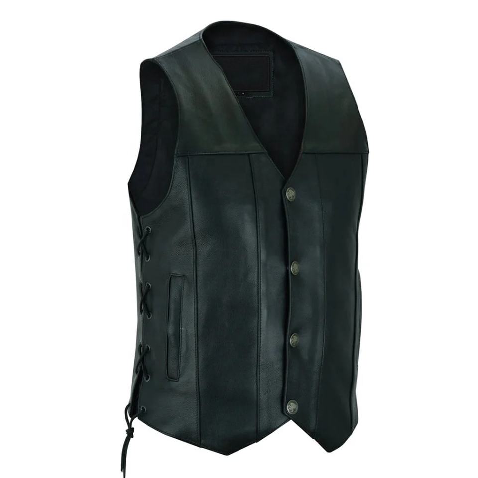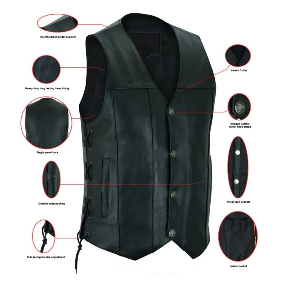 เสื้อกั๊กหนังแท้ทำมือสำหรับขี่มอเตอร์ไซค์ เสื้อกั๊กมอเตอร์ไซค์หนังหนา 3 มม. เสื้อกั๊กขี่มอเตอร์ไซค์