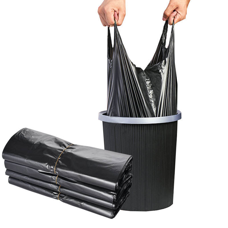 ถุงขยะแบบเสื้อกั๊ก สีดำ หนา ทนทาน ใช้แล้วทิ้ง ถุงพลาสติกแบบถือได้ ถุงขยะอเนกประสงค์สำหรับใช้ในครัวเรือน