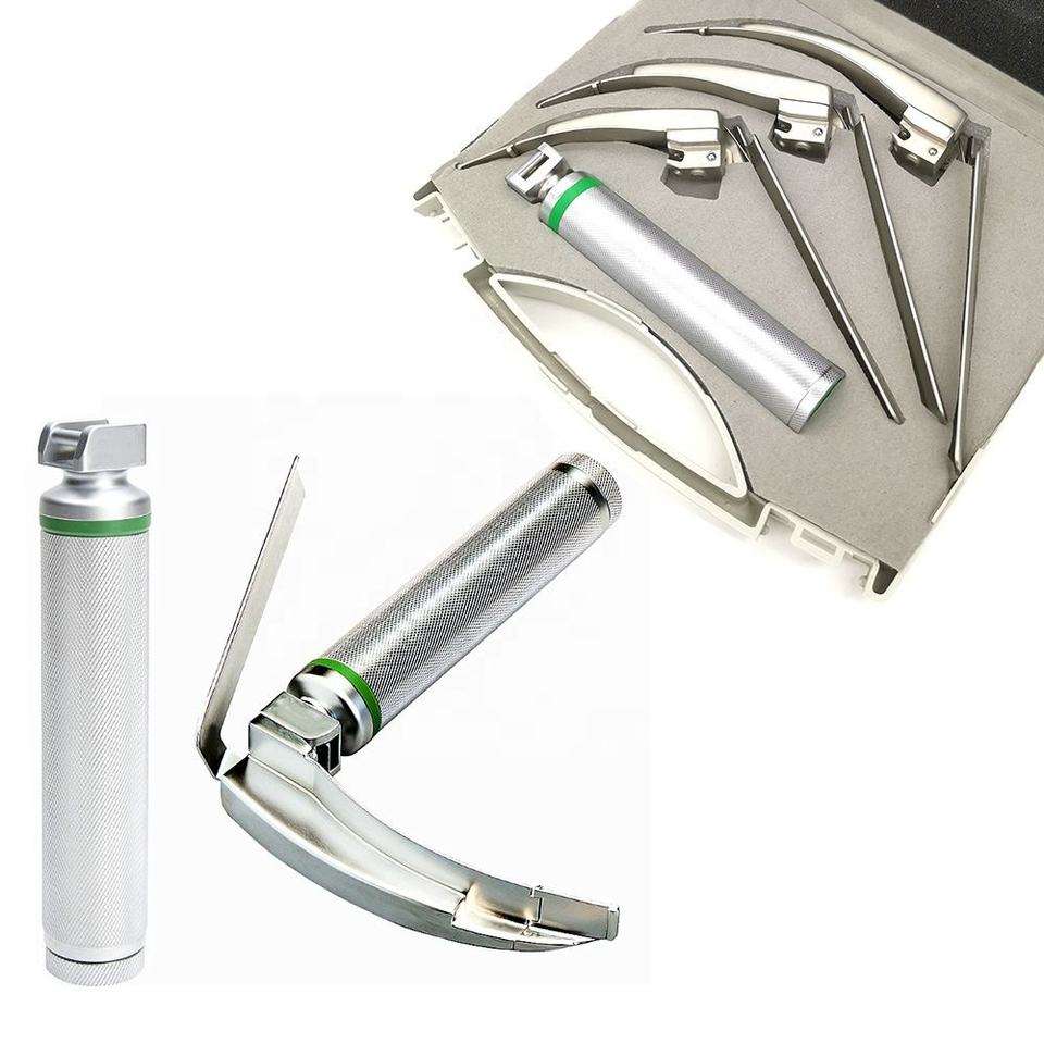 ชุดเครื่องมือตรวจกล่องเสียงแบบ LED Combo ยี่ห้อ Vet ประกอบด้วยเครื่องตรวจกล่องเสียงแบบ Macintosh 3 ใบมีด และใบมีด Miller 3 ใบ ทำจากเหล็กกล้า ใช้สำหรับการใส่ท่อช่วยหายใจโดย Endochoice Medical
