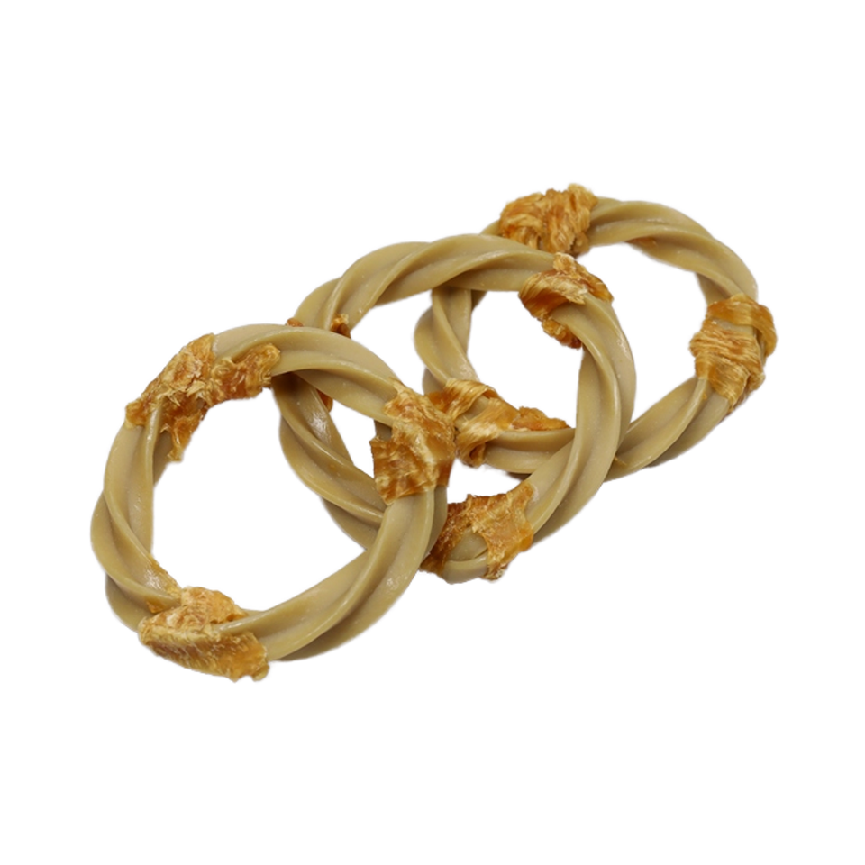 ส่วนผสม:แป้งมันสำปะหลัง, แป้งมันฝรั่ง, ไก่, กลีเซอรีนผัก