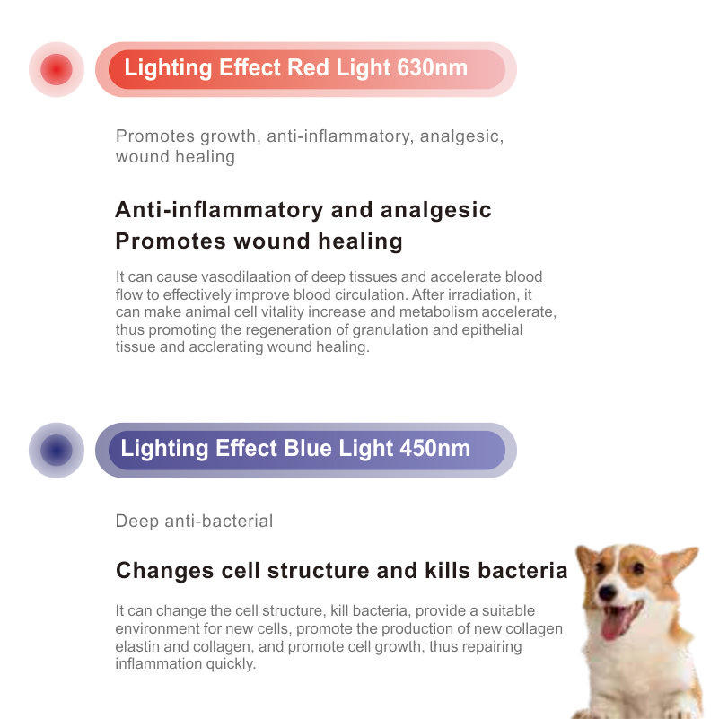 อุปกรณ์บำบัดด้วยแสง VetLed 26LED สีแดง น้ำเงิน อินฟราเรด สำหรับสุนัข ดูแลผิวหนังสัตว์เลี้ยง อุปกรณ์ฟื้นฟูสุขภาพสัตว์