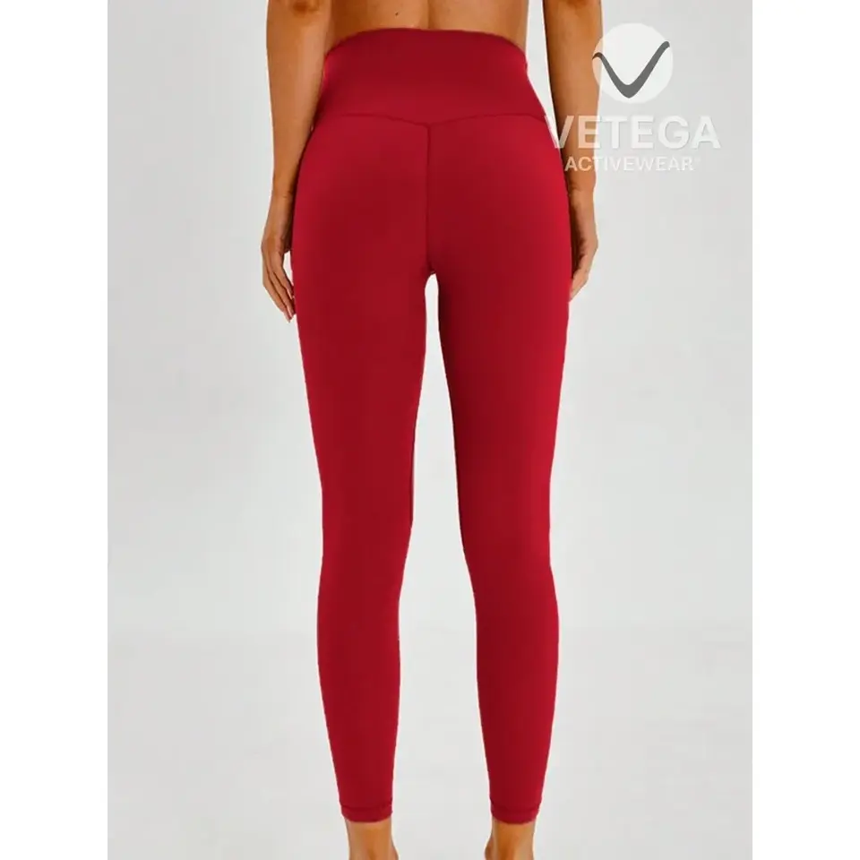 กางเกงโยคะขายาวเอวสูงสำหรับผู้หญิง ยี่ห้อเวเทกา สีบอร์โดซ์ ผลิตจากผ้าถักยืดหยุ่นสูง สีพื้น ซักมือได้