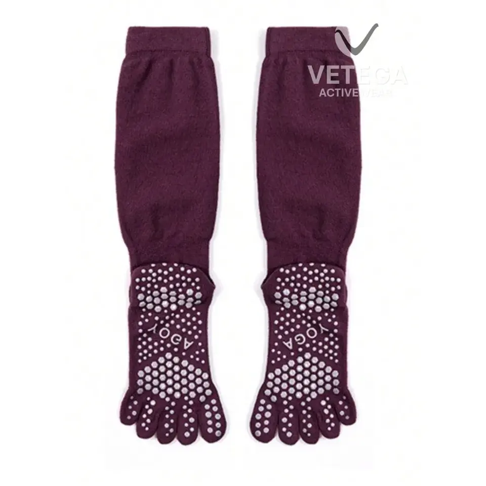 ถุงเท้าผ้าทอเนื้อผ้าฝ้าย 100% แบบไม่ลื่นเวเทกา เพลนสีบอร์โดซ์ 1 คู่