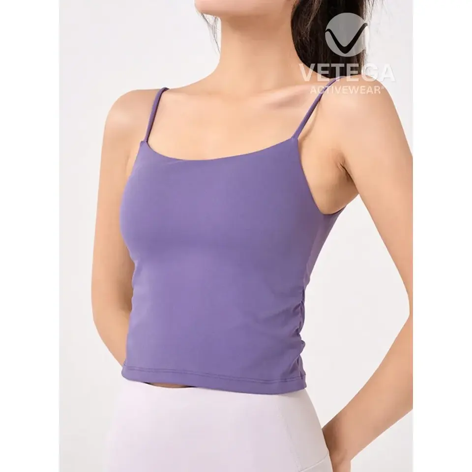 เสื้อกล้ามทรงสลิมฟิตสำหรับเล่นกีฬาและฟิตเนสเสื้อโยคะสีพื้นดีไซน์ครอปเซ็กซี่
