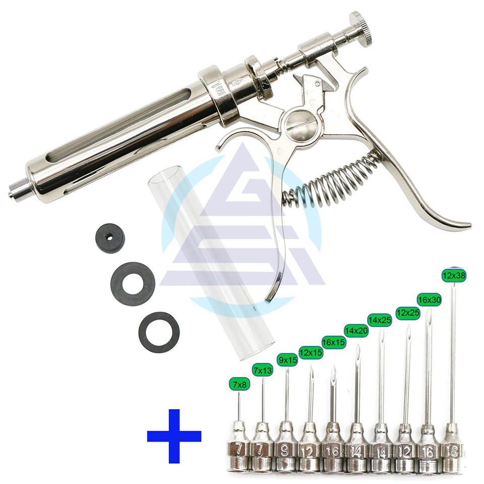 ปืนฉีดยาสัตว์แบบต่อเนื่องชนิดรีวอลเวอร์ ขนาด 10/20/50 มล. ทำจากสแตนเลสสตีล สำหรับฉีดวัคซีนอัตโนมัติ ใช้กับวัว หมู แกะ
