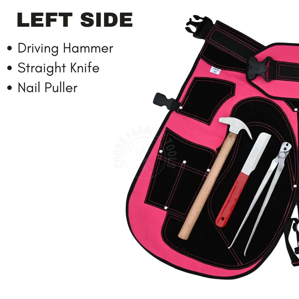 การใช้งาน:ชุดเครื่องมือช่างเกือกม้า ผ้ากันเปื้อนช่างเกือกม้า เครื่องมือตัดแต่งกีบสำหรับทำเกือกม้า