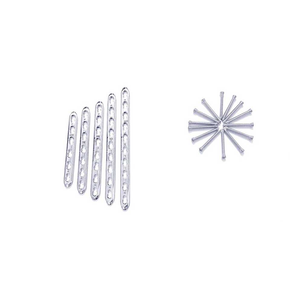 ชุดแผ่นโลหะสำหรับสัตวแพทย์แบบท่อขนาด 1/3 จำนวน 25 ชิ้น พร้อมสกรู LCP ขนาด 3.5 มม. 100 ชิ้น สำหรับศัลยกรรมกระดูกและข้อ พร้อมคู่มือ
