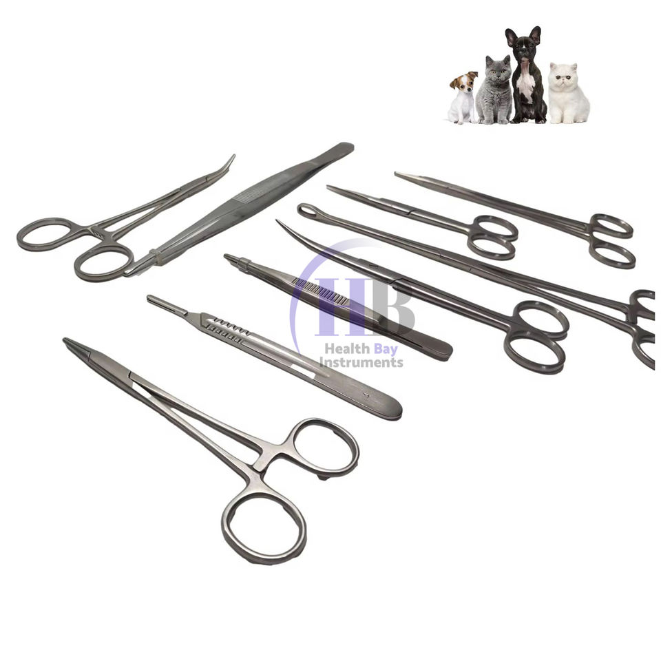 ชุดเครื่องมือผ่าตัดสัตวแพทย์ชุดเครื่องมือผ่าตัดสแตนเลสแบบใช้ซ้ำได้สำหรับการผ่าตัดทั่วไปของสัตว์ขนาดเล็ก