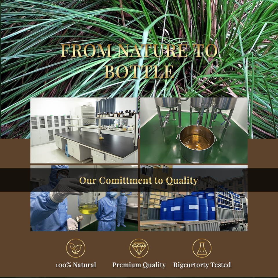 น้ำมันเวติเวอร์ออร์แกนิคบริสุทธิ์ กลิ่นหอมจากธรรมชาติ น้ำมันหอมระเหยแท้ ผู้ผลิต OEM สำหรับเทียนหอม น้ำหอม สบู่ ผลิตภัณฑ์ดูแลเส้นผม ผิวกาย และบำรุงผิว