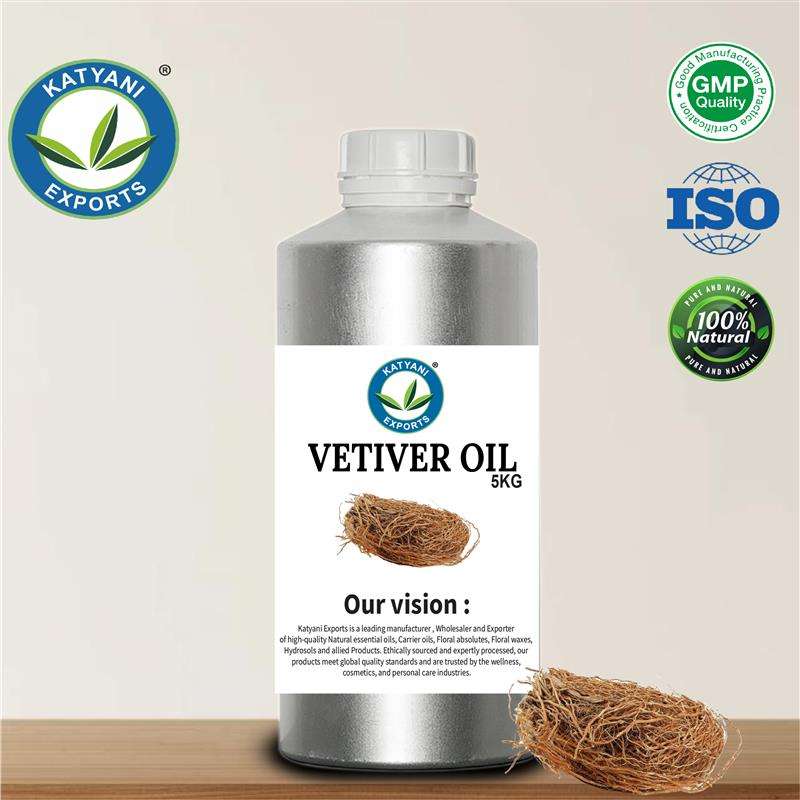 น้ำมันรากเวติเวอเรีย ซิซาโนอิเดส บริสุทธิ์ 100% และน้ำมันเวติเวอร์ธรรมชาติ - สำหรับเครื่องสำอางและสูตรอโรมาเธอราพี - โดย Katyani Exports