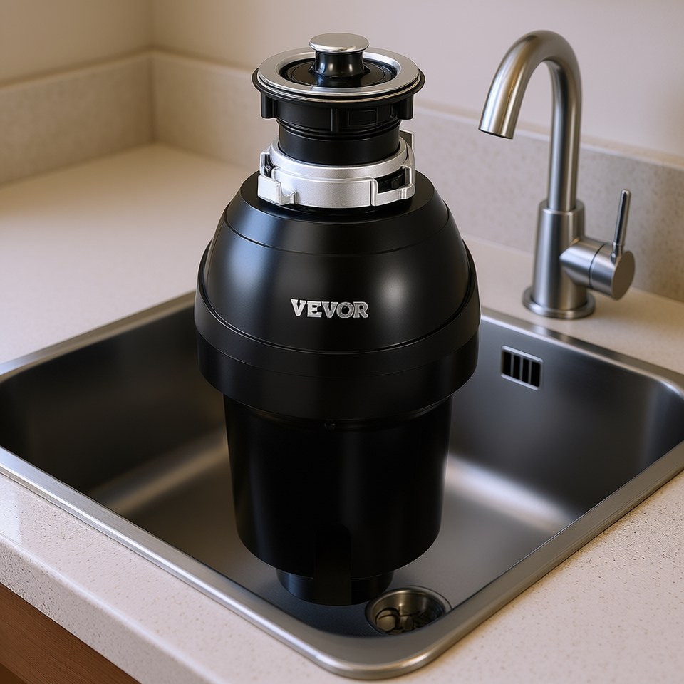เครื่องกำจัดขยะ Vevor 1 แรงม้า แบบต่อเนื่อง 3270 รอบต่อนาที ห้องบดสแตนเลส ใช้ในครัวเรือนแบบมีสาย