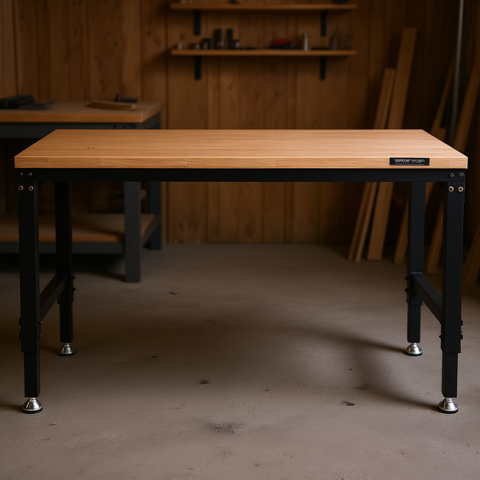 โต๊ะทำงานปรับระดับได้ Vevor ขนาด 48 x 24 นิ้ว หน้าท็อปไม้เนื้อแข็ง โต๊ะช่างไม้สำหรับงานอุตสาหกรรม พร้อมระบบปรับความสูง สำหรับใช้ในโรงงาน
