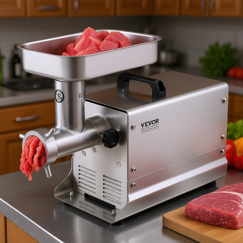 เครื่องบดเนื้อไฟฟ้าเชิงพาณิชย์ Vevor 11 ปอนด์/นาที เครื่องบดเนื้อสแตนเลส เครื่องทำไส้กรอกในครัว