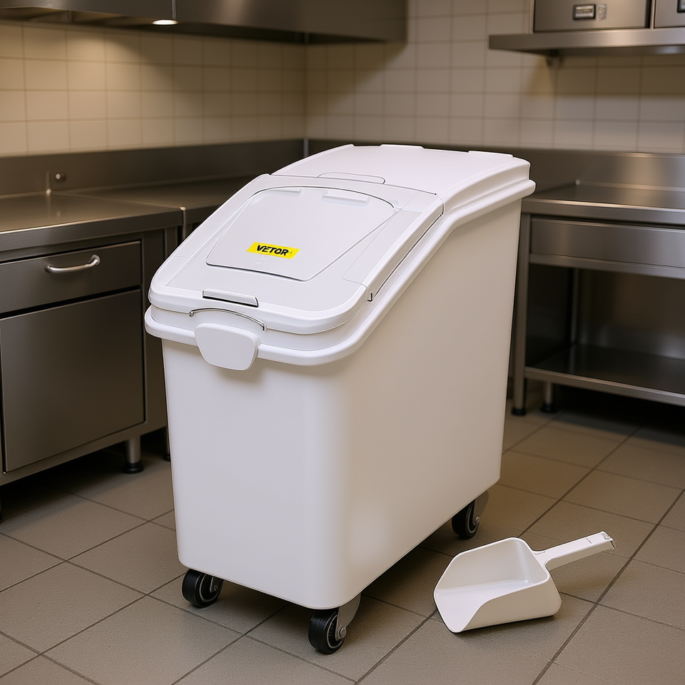 ภาชนะบรรจุอาหารสำหรับครัวเชิงพาณิชย์ Vevor ขนาด 27 แกลลอน ฝาเลื่อนสีขาว พร้อมที่ตัก รุ่น D0100HADMU7