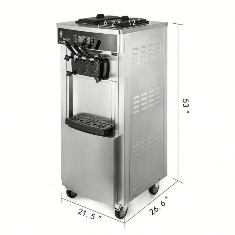 Vevor เครื่องทำไอศกรีมแบบนิ่มขนาดเล็กบนโต๊ะเชิงพาณิชย์เครื่องทำไอศกรีมสแตนเลสไฟฟ้าอัตโนมัติสำหรับใช้ในครัวเรือน