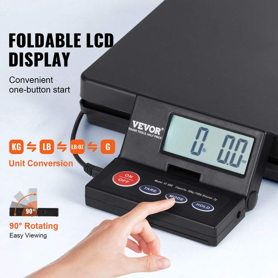 เครื่องชั่งดิจิตอล Vevor สำหรับการจัดส่ง 150 กก. 110 ปอนด์ ความแม่นยำ 0.07 ออนซ์ หน้าจอ LCD พร้อมฟังก์ชัน Tare Hold