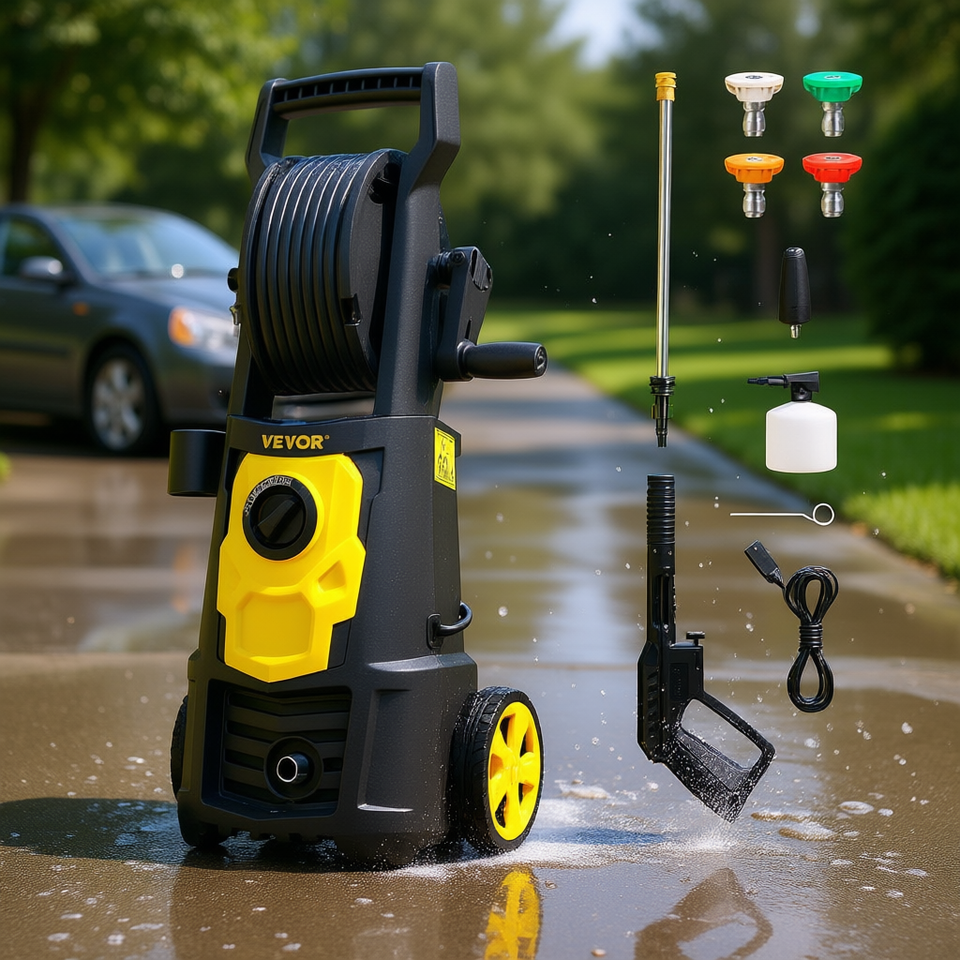 เครื่องฉีดน้ำแรงดันสูงไฟฟ้า Vevor 2000 Psi 1.76 Gpm แบบพกพา พร้อมหัวฉีด 5 แบบ และปืนฉีดโฟม สำหรับใช้งานกลางแจ้ง