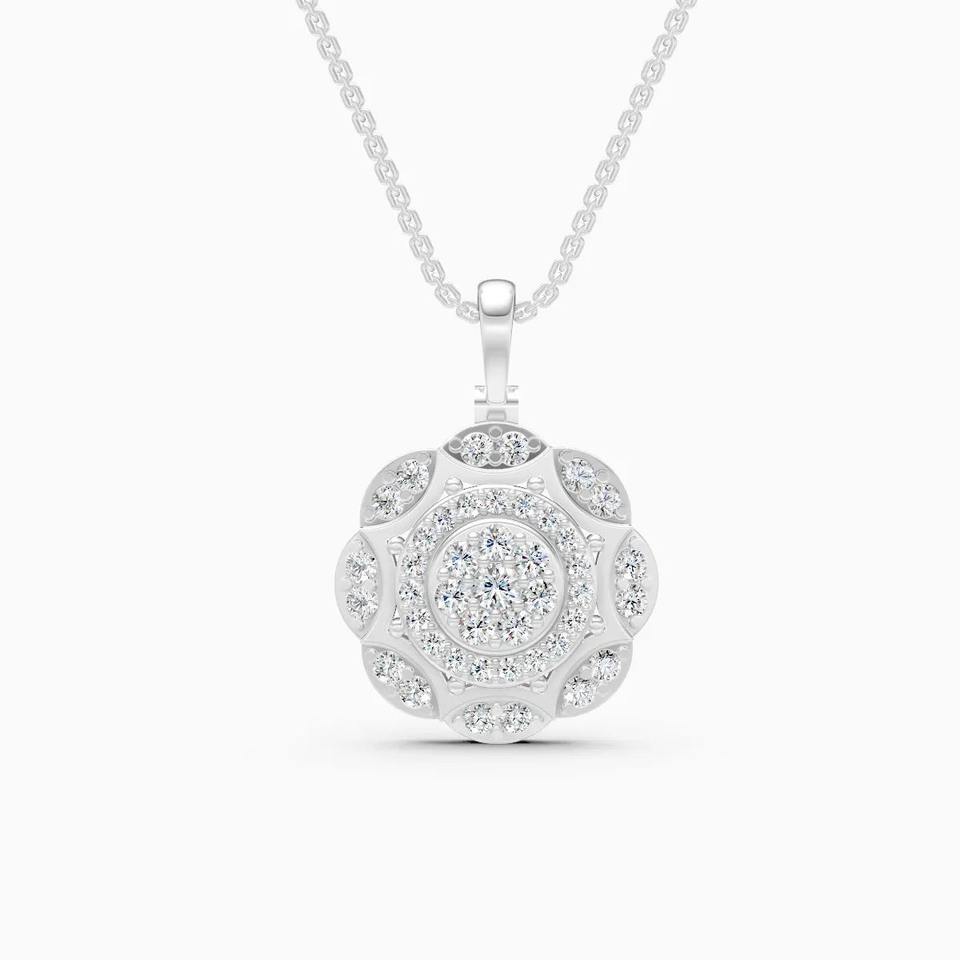 จี้เพชรทรงดอกไม้ 0.60 กะรัต ผลิตในห้องปฏิบัติการ ประดับด้วยทองคำ 9K สีเหลือง ขาว และโรสโกลด์