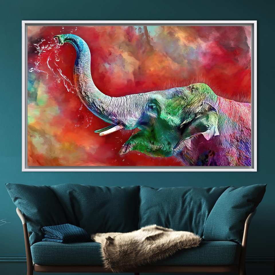 ภาพพิมพ์บนผ้าใบลายช้างแบบนามธรรมสีสันสดใส - ศิลปะติดผนังสีสันสดใสสมัยใหม่,1P:กรอบสีขาว