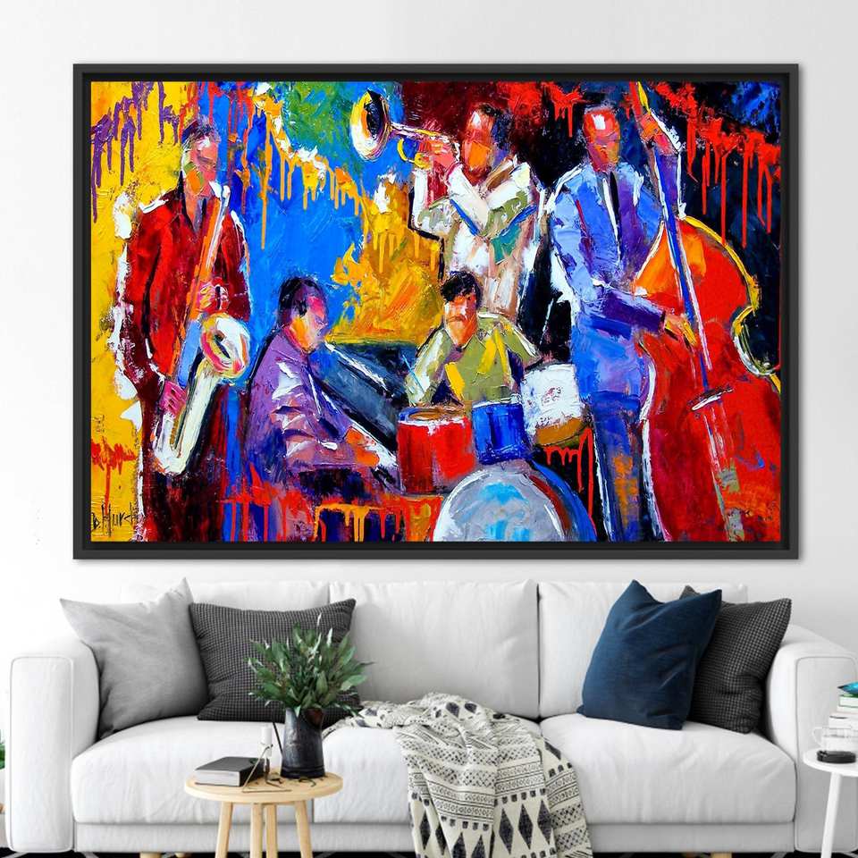 ผืนผ้าใบดนตรีนามธรรมสีสันสดใส - ภาพพิมพ์ศิลปะติดผนังแนวแจ๊ส,1P:กรอบสีดำ