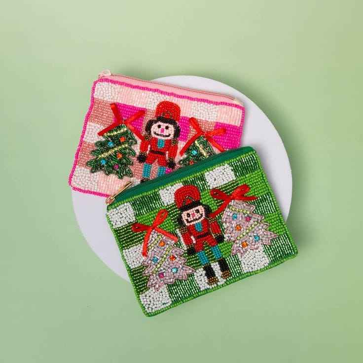 กระเป๋าใส่เหรียญรูปทรงพิเศษ พิมพ์ลายการ์ตูนด้วยเทคนิคเลตเตอร์เพรส ประดับลูกปัดสีน้ำเงินสดใส ทำด้วยมือ ดีไซน์คัพเค้ก ใช้ได้ทุกวัน