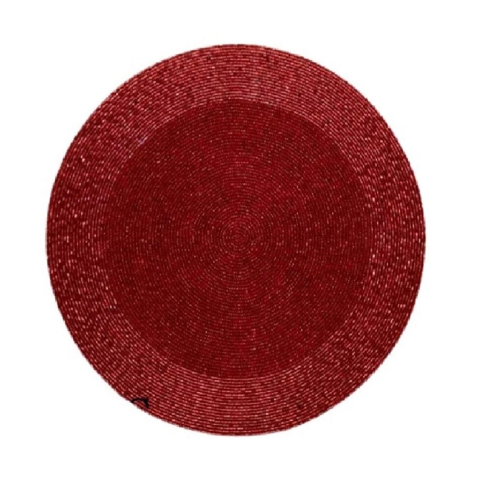 ที่รองจานทรงกลมประดับด้วยลูกปัดสีน้ำเงินสดใสที่ชาร์จโต๊ะแบบแฮนด์เมดสำหรับตกแต่งชายฝั่งงานอีเวนต์ธีมชายหาดและผ้าปูโต๊ะแบบหนา