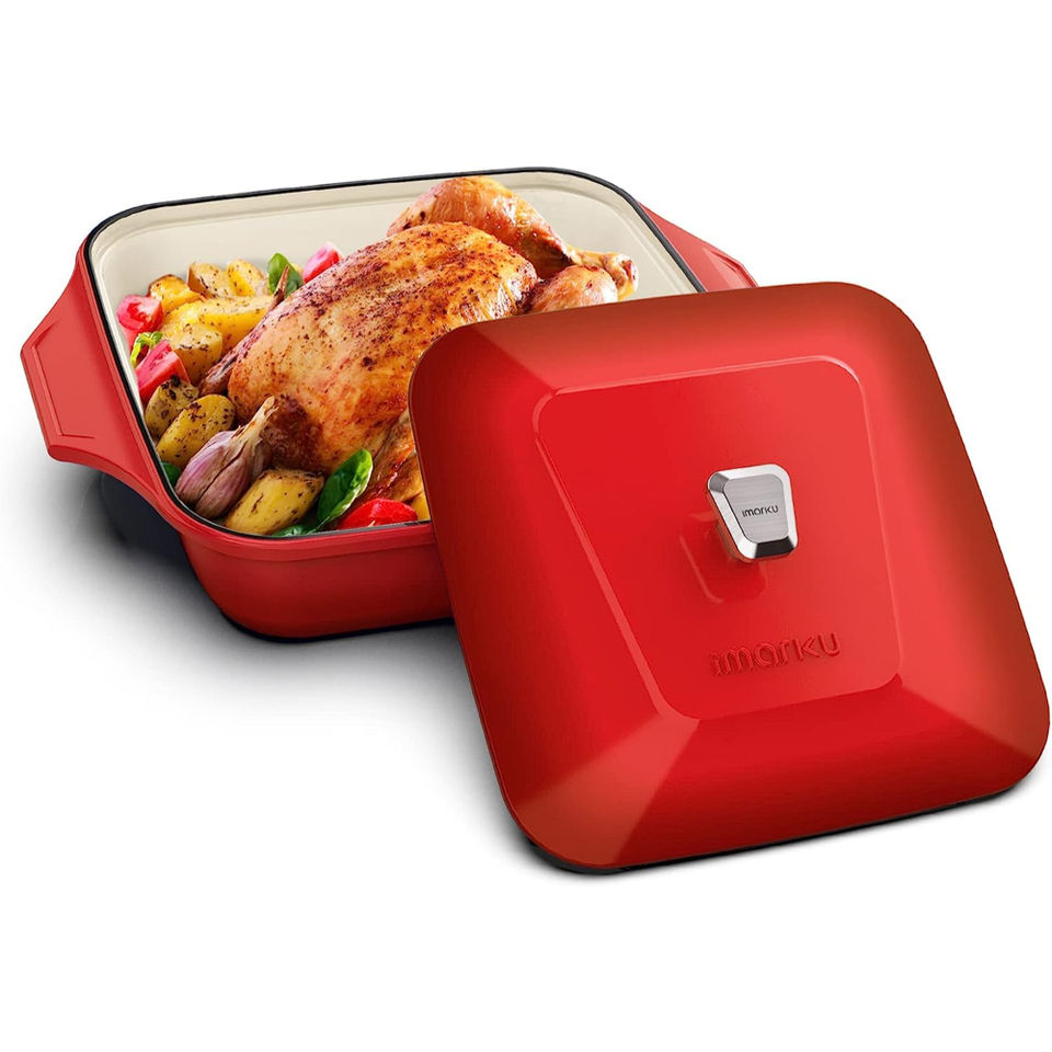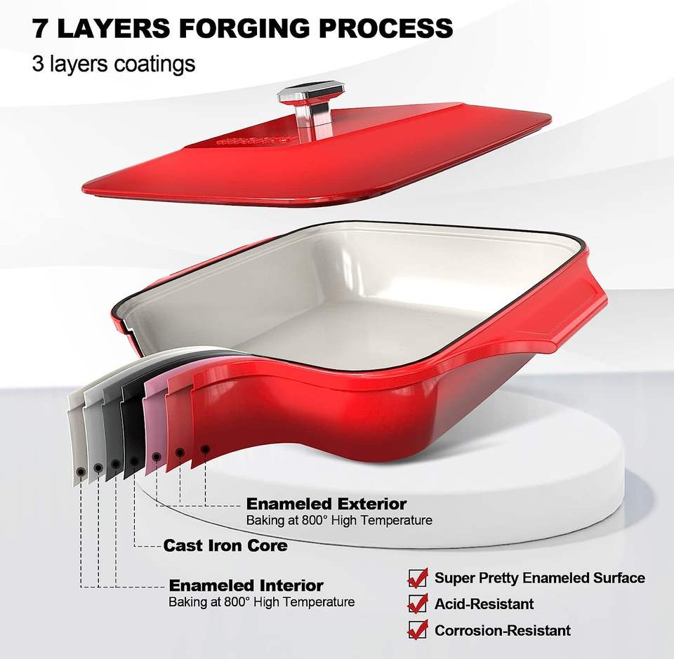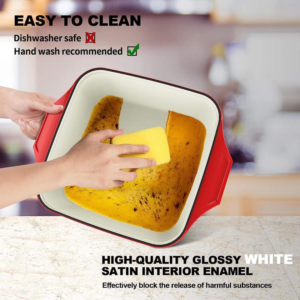 หม้อปรุงอาหารทรงสี่เหลี่ยมสีแดงลายเชอร์รี่สดใสคุณภาพดีเยี่ยมเหมาะสำหรับการเสิร์ฟอาหารและการจัดแสดงในครัวที่ทันสมัย