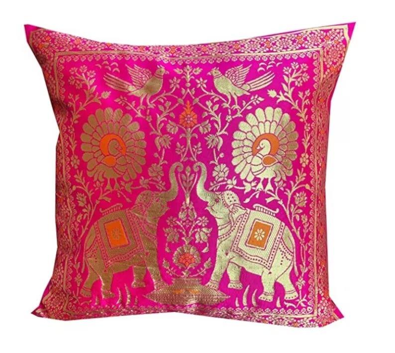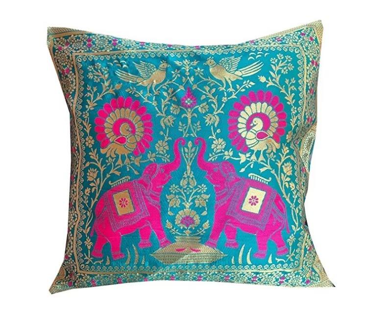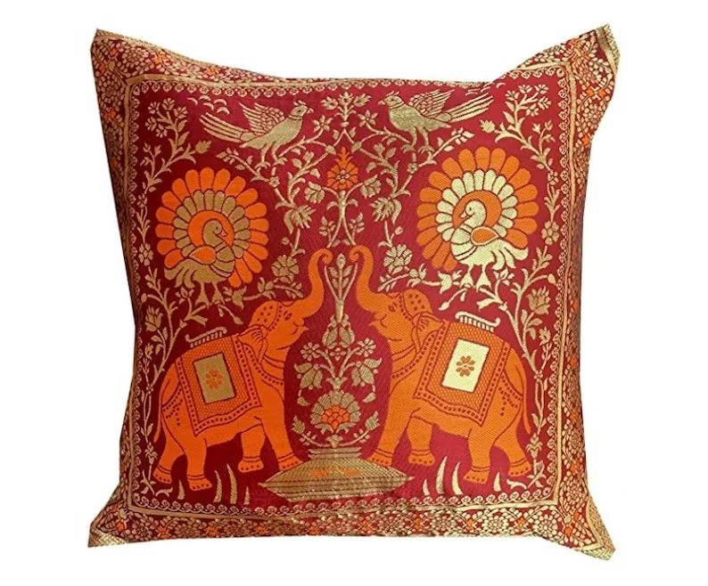 ปลอกหมอนอิงผ้าไหมลายช้างสีสันสดใสขนาด16x16นิ้วปลอกหมอนอิงตกแต่งโซฟา