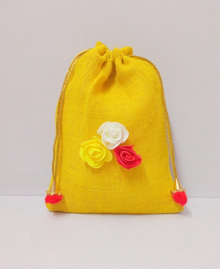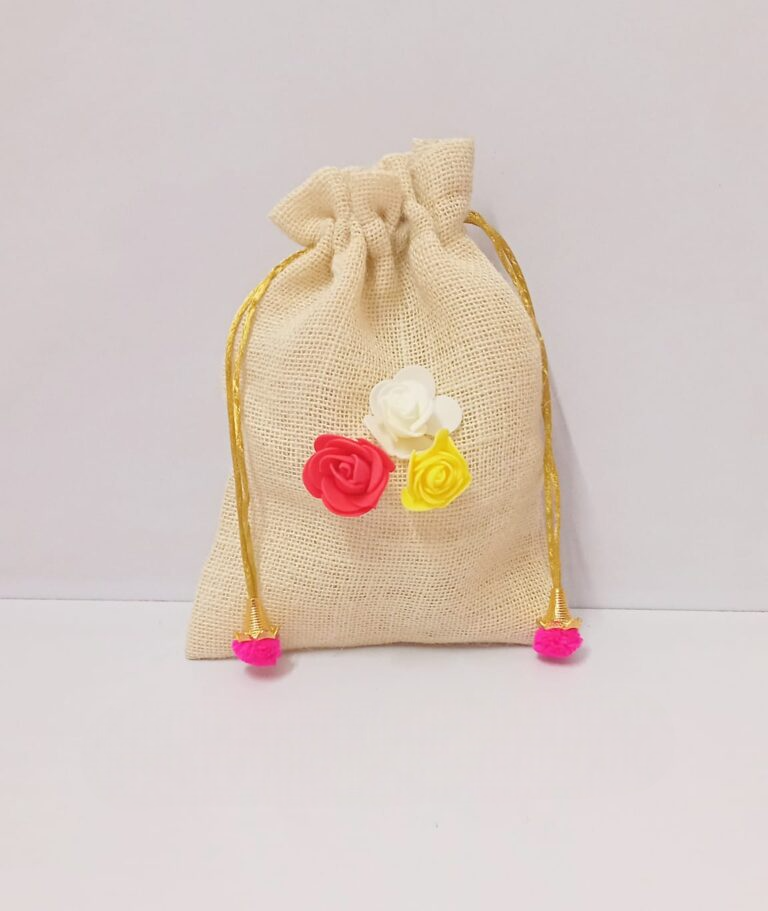 ถุงผ้าปอกระเจาสีสันสดใส ทำจากเส้นใยธรรมชาติที่เป็นมิตรกับสิ่งแวดล้อม ใช้ซ้ำได้ ทนทาน พร้อมเชือกรูด สำหรับบรรจุของขวัญ ขนาด 9*7 นิ้ว