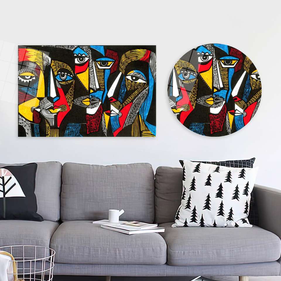ภาพพิมพ์บนผ้าใบลายหน้าคนแอฟริกันสีสันสดใส - ของตกแต่งผนังแนวแอฟโฟรเซนตริกแบบนามธรรม, งานศิลปะบนกระจกนิรภัย