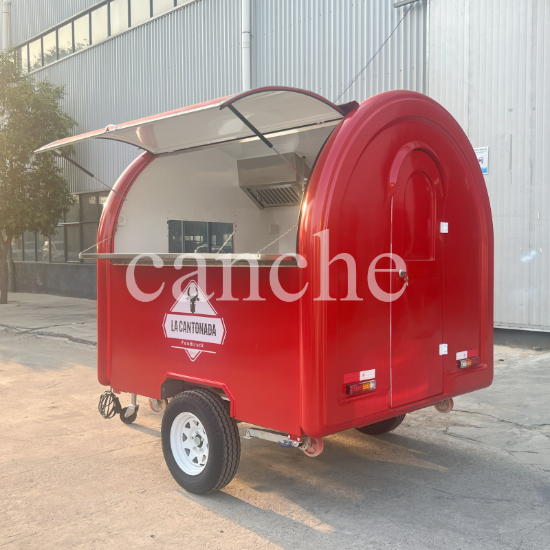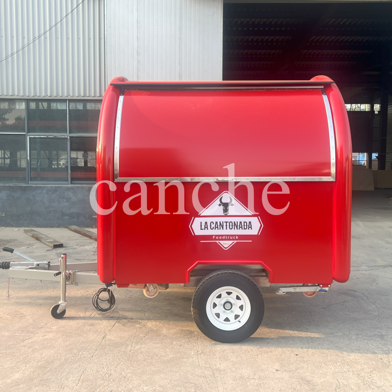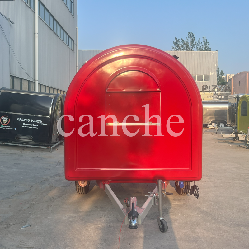 รถเข็นขายอาหารขนาดเล็กปรับแต่งได้สดใส | รถพ่วงสำหรับตั้งแคมป์ไอศครีมพร้อมอุปกรณ์อบ