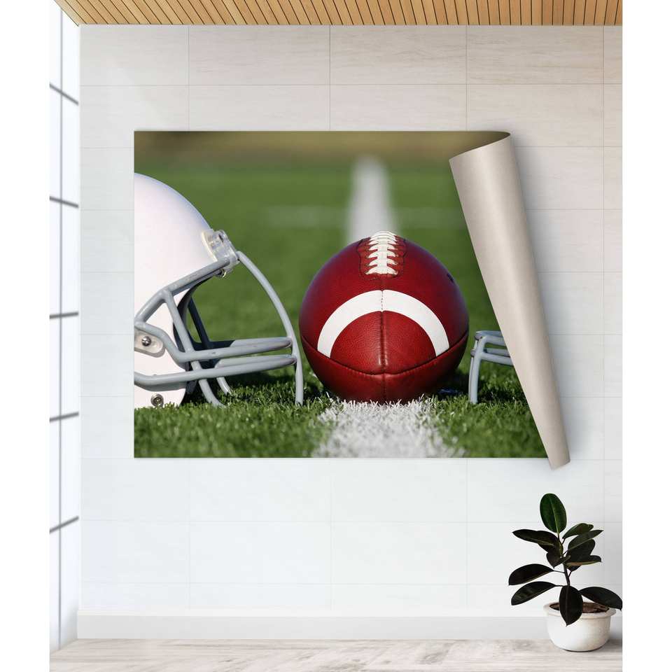 ภาพพิมพ์บนผ้าใบลายฟุตบอลและหมวกกันน็อคสีสันสดใส: ของตกแต่งผนังแนวกีฬาสมัยใหม่, โปสเตอร์แบบม้วน