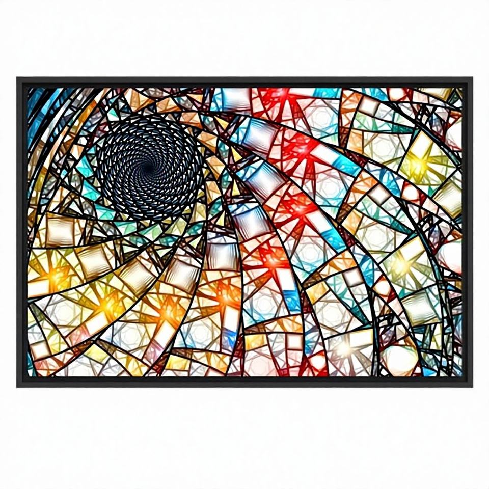 ภาพพิมพ์บนผ้าใบลายศิลปะแฟรคทัลสีสันสดใส สไตล์อาร์ตเดโค ตกแต่งบ้านแบบกระจกสี พร้อมกรอบใส