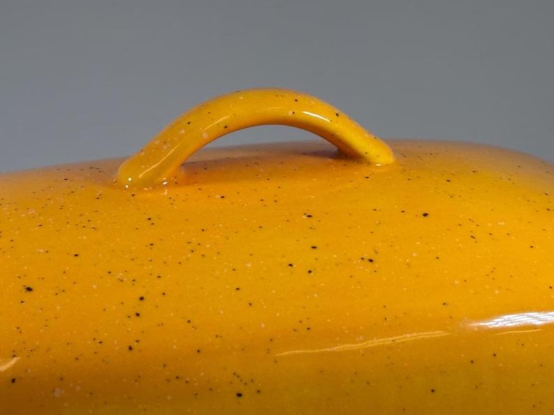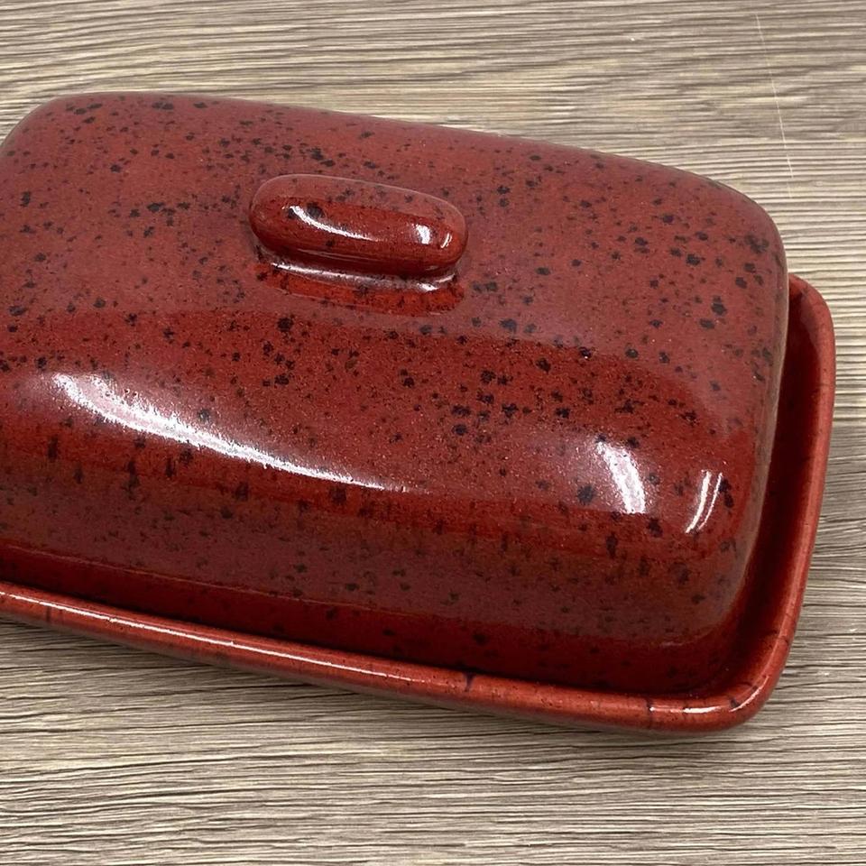 กล่องเก็บเนยเคลือบเงาสีสันสดใส พร้อมฝาปิดแบบยกง่าย ฐานลึก ทนทาน ใช้สำหรับเก็บเนยบนเคาน์เตอร์ครัว