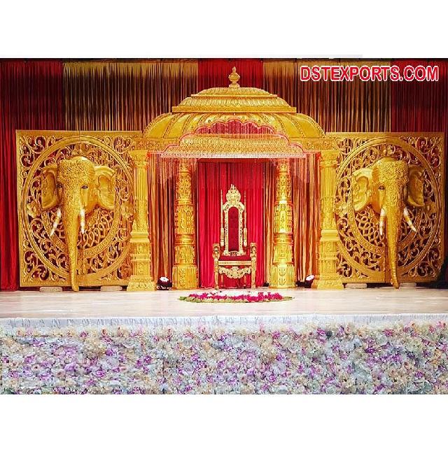 Vibrant Golden Theme Indian Wedding StageProduct name