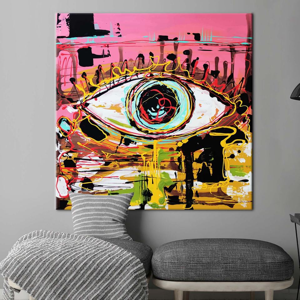ภาพพิมพ์บนผ้าใบลายกราฟฟิตีสีสันสดใส - โปสเตอร์ศิลปะแนวสตรีทสมัยใหม่ ห่อหุ้มอย่างดี