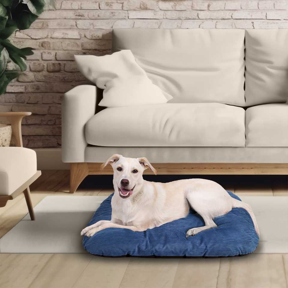 หมอนสำหรับสัตว์เลี้ยงรูปทรงสี่เหลี่ยมผืนผ้าโค้งมนขนาดกลางสำหรับแมวและสุนัขสีฟ้าสดใส