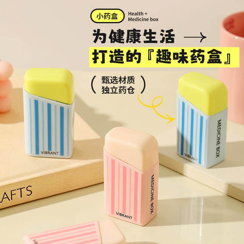 กล่องยาสีสันสดใส กล่องใส่ยาแบบพกพาทรงสี่เหลี่ยมพร้อมปุ่มเดียวสำหรับใช้ประจำวัน สีชมพู สีฟ้า สีเหลือง