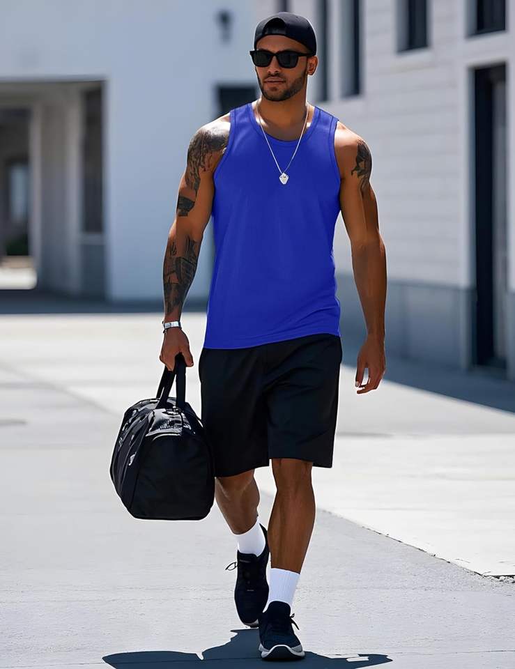 เสื้อกล้ามผู้ชายสีสันสดใส เนื้อผ้านุ่ม ระบายอากาศได้ดี ทรงหลวม น้ำหนักเบา สวมใส่สบาย ให้ความรู้สึกสดชื่น ใช้งานได้ทุกวัน ดีไซน์ทันสมัย เย็บตะเข็บทนทาน