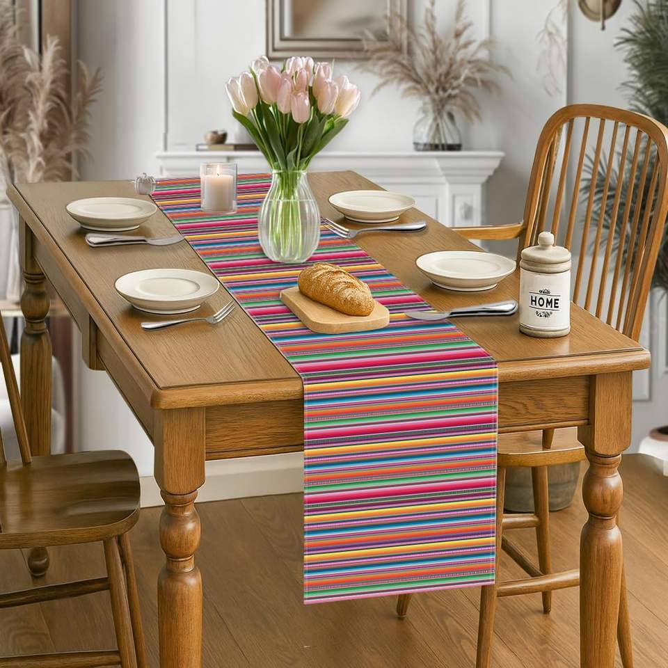 นักวิ่งโต๊ะชาวเม็กซิกันที่มีชีวิตชีวาได้รับแรงบันดาลใจจากซีรีส์แบบดั้งเดิมสีสำหรับเทศกาลที่ได้แรงบันดาลใจจากซีรีส์แบบดั้งเดิมสำหรับธีมซินโก้เดอเมโยเม็กซิกัน