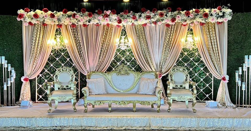 ชุดรูปแบบ punjabi Sangeet ที่มีชีวิตชีวาพร้อมรูปปั้น punjabi อินเดียงานแต่งงาน mhandi DJ Sangeet Night STAGE setMalaysia